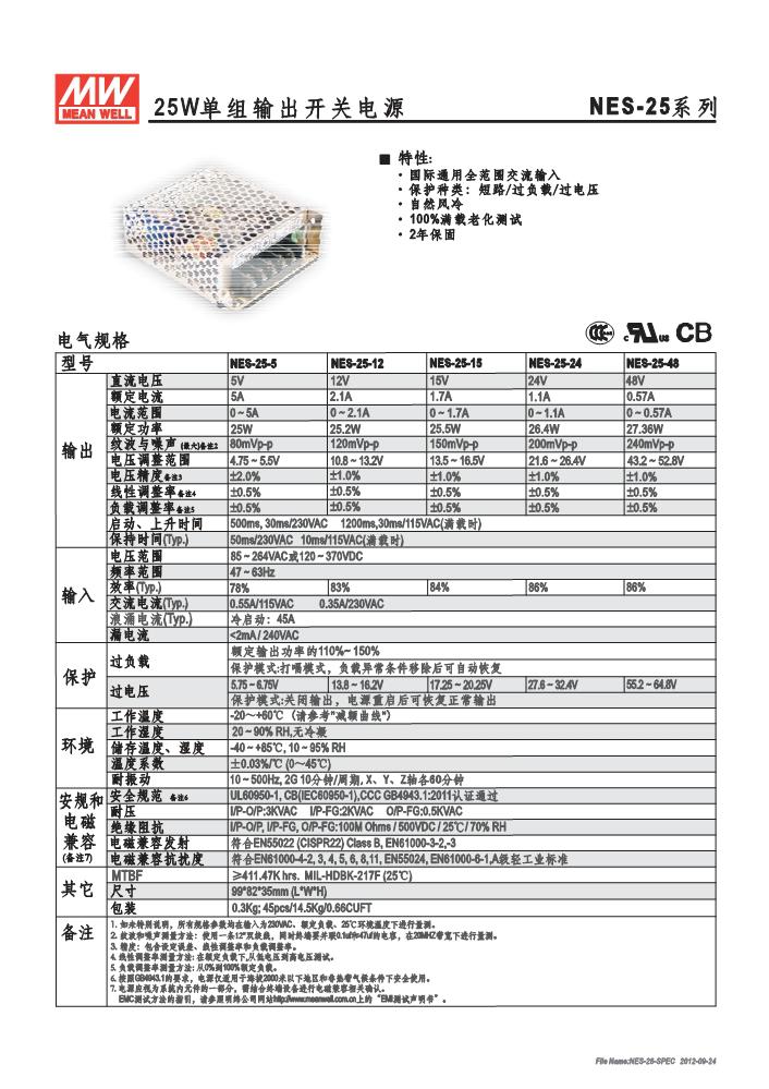 明纬开关电源NES-25-5,NES-25-12,NES-25-15,NES-25-24,NES-25-48