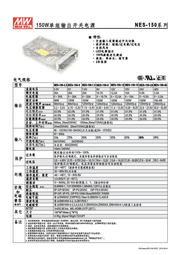 明纬开关电源NES-150系列NES-150-5,NES-150-12,NES-150-15,NES-150-24,NES-150-48
