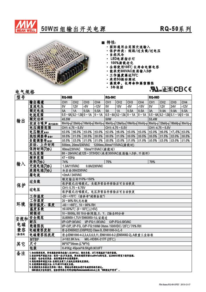 【产品型号】明纬四组输出开关电源RQ-50系列
